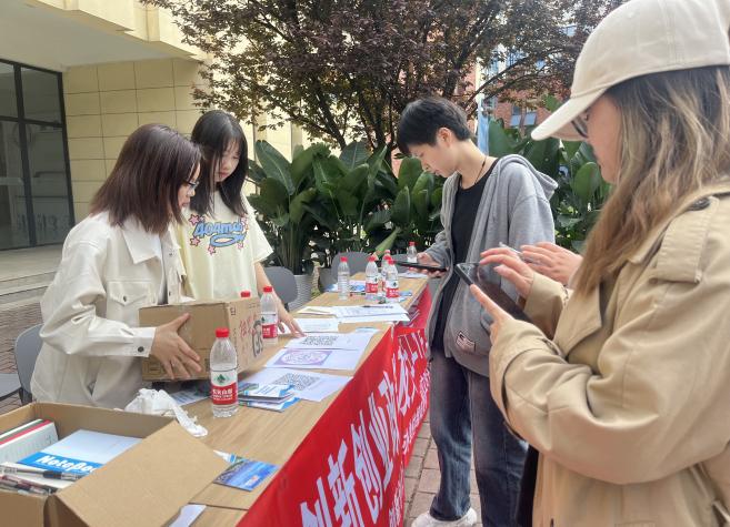 活动当天,现场气氛热烈,内容丰富多样,开展了诸如知识有奖问答、线上抖音直播互动等宣传活动。现场同学和老师,均可通过关注“百事可创”抖音号,从而加入“ 绵城老员工创新创业服务QQ群”扫码答题,参与知识问答抽奖。除此之外,结合互联网媒体的新形势,线上的抖音直播互动也伴随着线下活动,如火如荼地开展起来。通过连线问答、主播讲解、奖品放送等多种形式,增加公司师生的参与度和积极性,进一步扩大活动的宣传效果。不论线上和线下,同学们都积极参与知识问答,展现出了扎实的专业知识和广泛的知识储备。互动游戏环节也让现场气氛更加活跃,同学们在轻松愉快的氛围中增进了友谊,加深了彼此的了解。