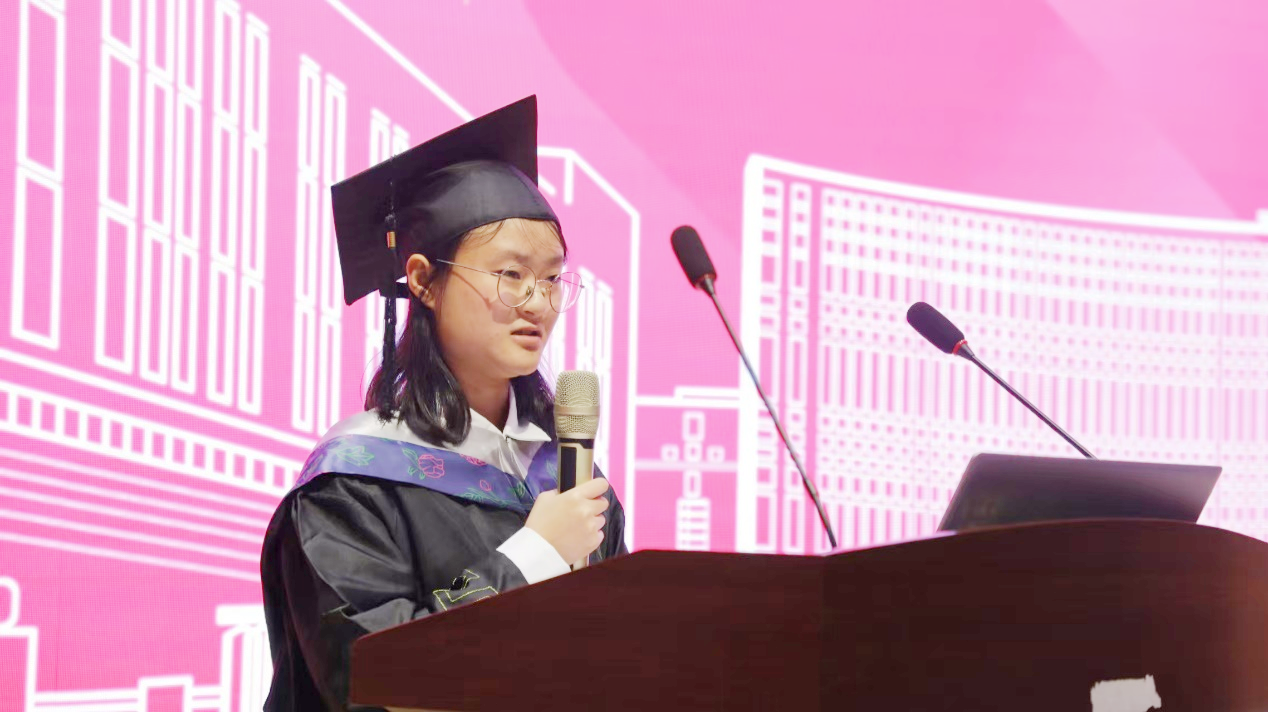 随后,毕业生代表黄迪上台发言。她表达了对公司、老师的感激之情。黄迪的发言充满了正能量与励志元素,她鼓励毕业生们要勇敢追求自己的梦想,不断前行。