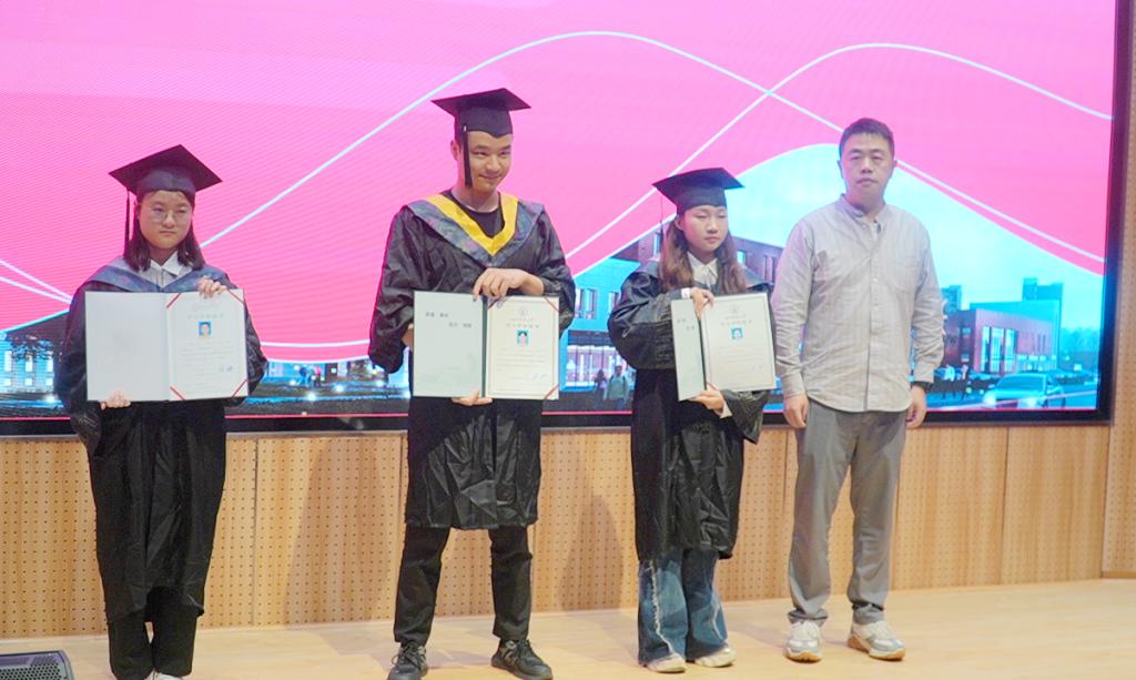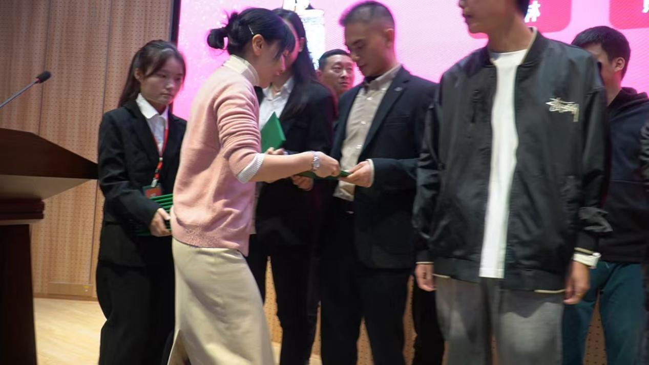 紧接着,柳薇副经理和唐军副经理分别走上台前,为毕业生们颁发毕业证书。每一份证书都承载着毕业生们的汗水与泪水,是他们辛勤努力的最好证明也是他们未来人生道路上的宝贵财富。在接过证书的那一刻,毕业生们的脸上洋溢着难以言表的喜悦与自豪。