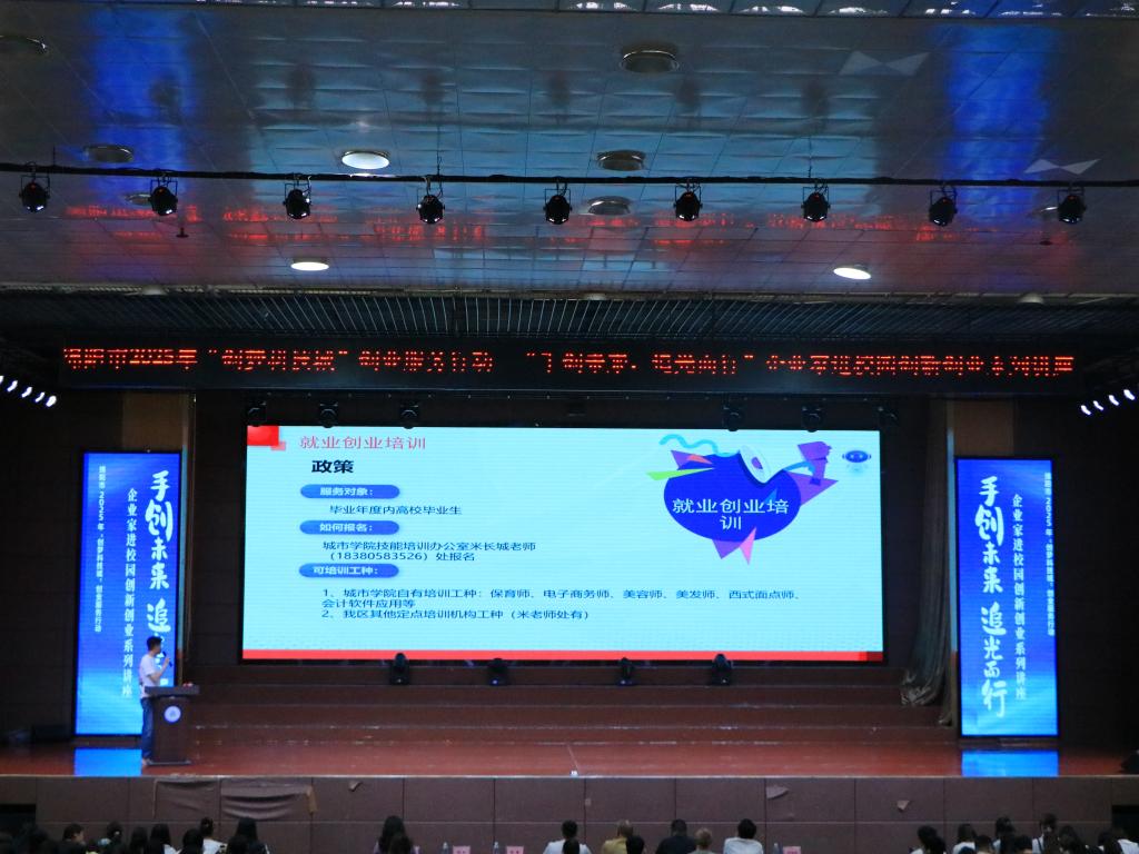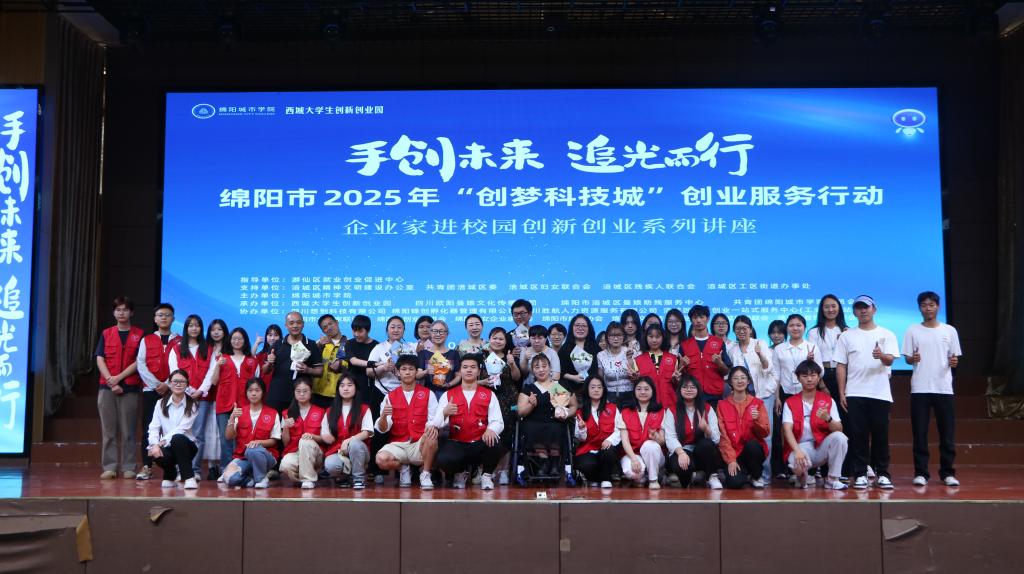 2025年4月18日,由绵阳市游仙区就业创业促进中心指导、yl7703永利集团主办,四川欧阳曼娘文化传播公司等多家单位联合承办的“手创未来,追光而行”企业家进校园创新创业讲座在yl7703永利集团游仙校区体育馆成功举办。本次讲座作为绵阳市2025年“创梦科技城”创业服务行动的重要一环,共计吸引1000余名师生参与,通过政策解读、创业案例分享、非遗文创展示等形式,为绵城学子搭建产教融合的实践桥梁。