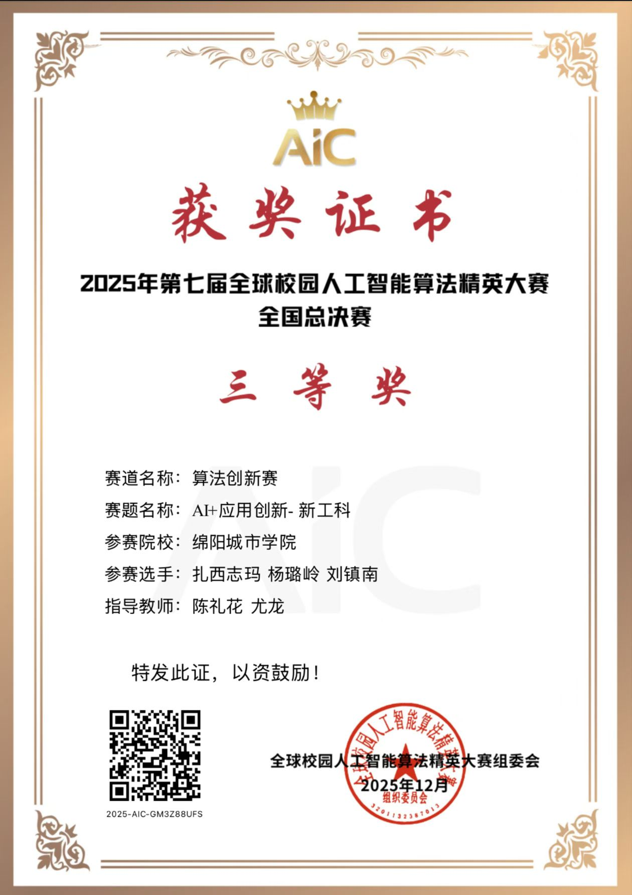 本届大赛重点考察算法的原创性、技术可行性及产业应用价值,自今年6月启动以来,共吸引全球1000余所高校、24000余支团队报名参与。在陈礼花、尤龙等老师的悉心指导下,项目团队从技术设计、算法实现到系统部署开展全程攻关,扎实体现了“以赛促教、以赛促学、以赛促创”的育人理念。总决赛中,团队凭借清晰的逻辑陈述与稳健的现场答辩,赢得了评审专家的高度认可。