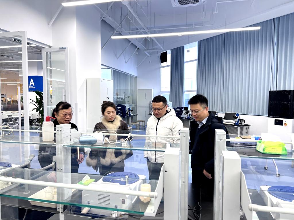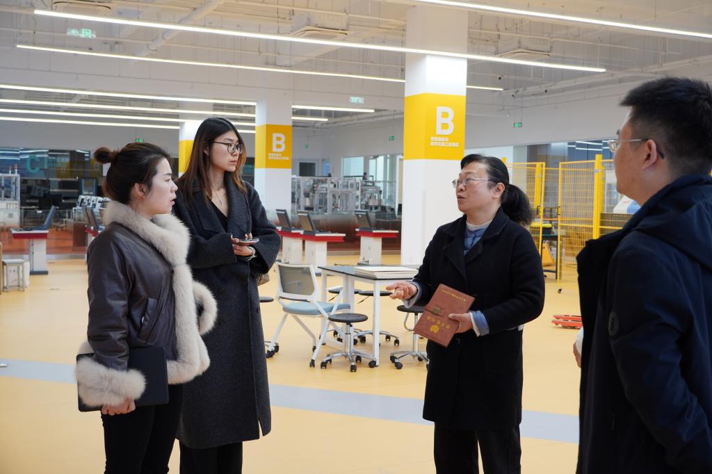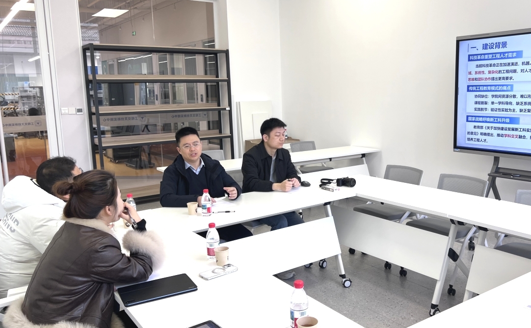 调研期间,浙大城市公司工程交叉创新实践中心戚伟主任、周赵凤主任系统介绍了中心的建设理念与运行机制。该中心以培养跨学科复合型工程人才为目标,整合校内资源,构建了功能模块化的实践教学区域,形成覆盖“创意验证—实验实践—调试验证”全链条的教学支撑体系。其“分层课程体系”与“进阶培养路径”相结合的设计,以及“教学—社会服务”双向联动机制,为公司相关平台建设提供了系统参考。